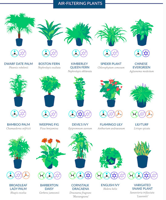 I risultati ottenuti da questa ricerca sono stati raccolti in una pubblicazione che ha fornito l’elenco delle 15 piante maggiormente efficaci nella pulizia dell’aria all’interno degli ambienti chiusi, sottolinendo anche l’importanza di avere almeno una pianta ogni 100 metri quadrati di casa o ufficio.